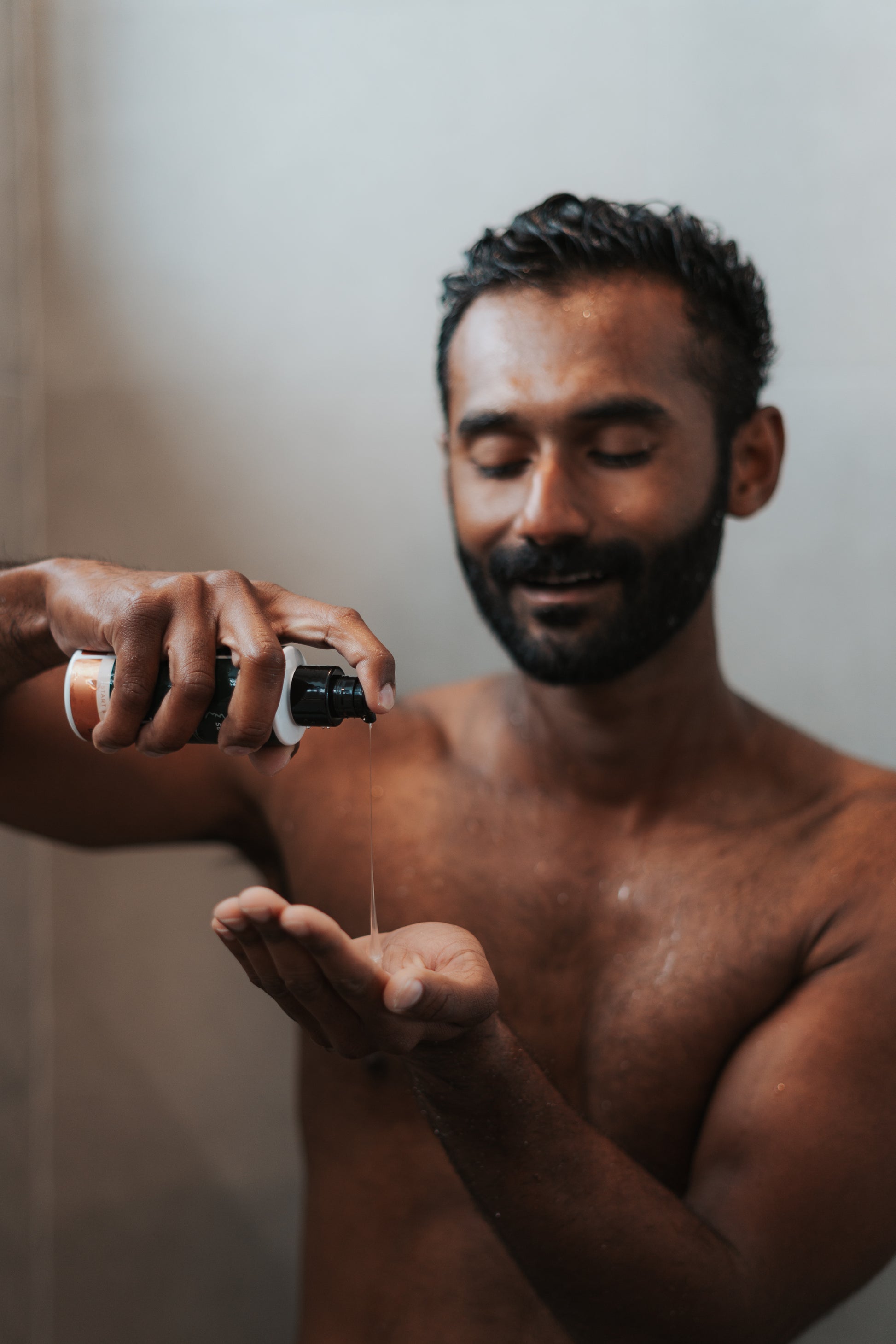 1 pump of Cleanser rubbed into wet face, rinse off. Once out of shower - 1 pump of Moisturiser onto dry face